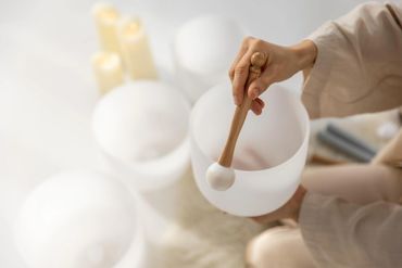 The first layer is vibration. Crystal singing bowls shift the energetic frequency of your walls, floors, ceilings — breaking up stagnation and inviting flow.